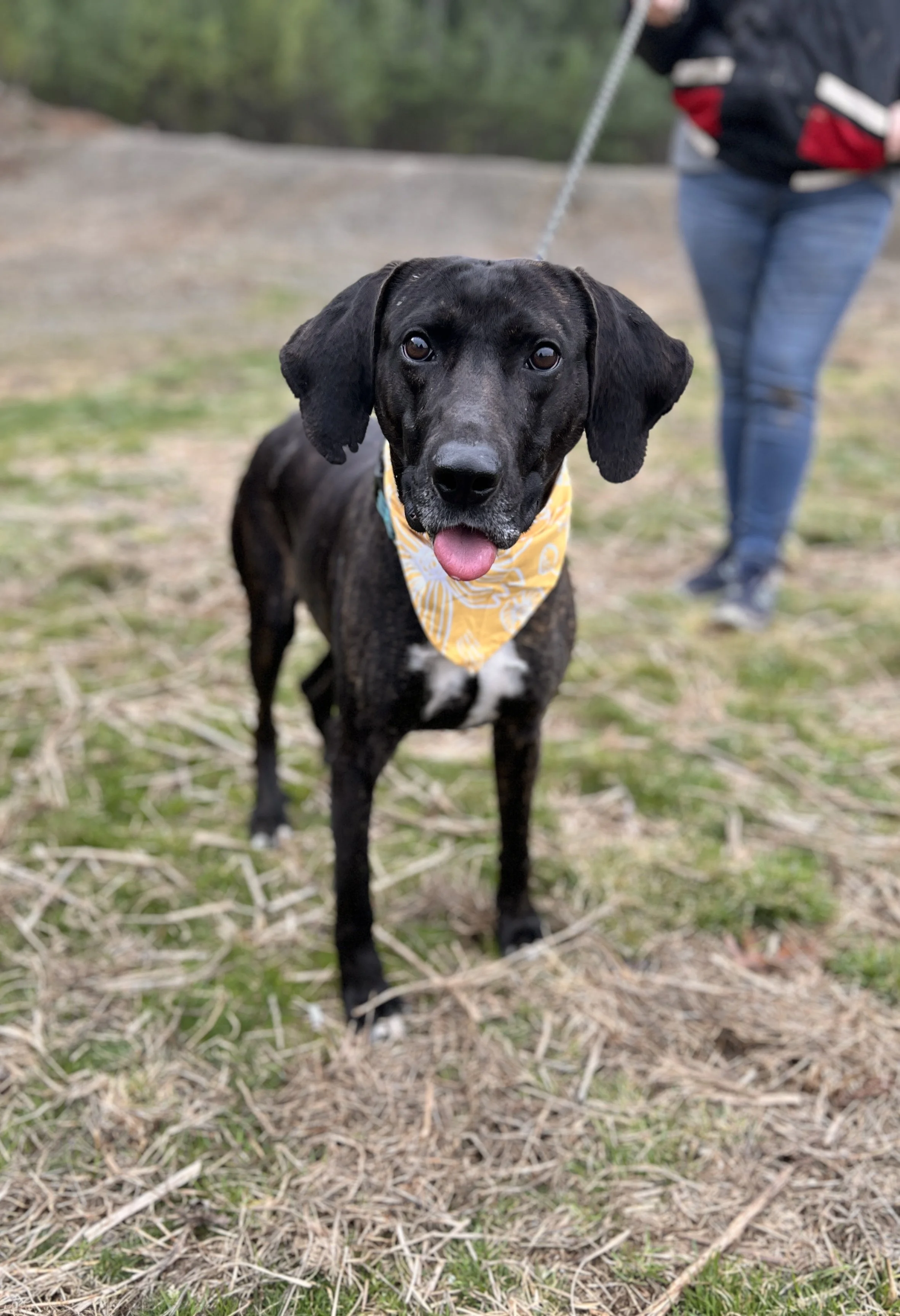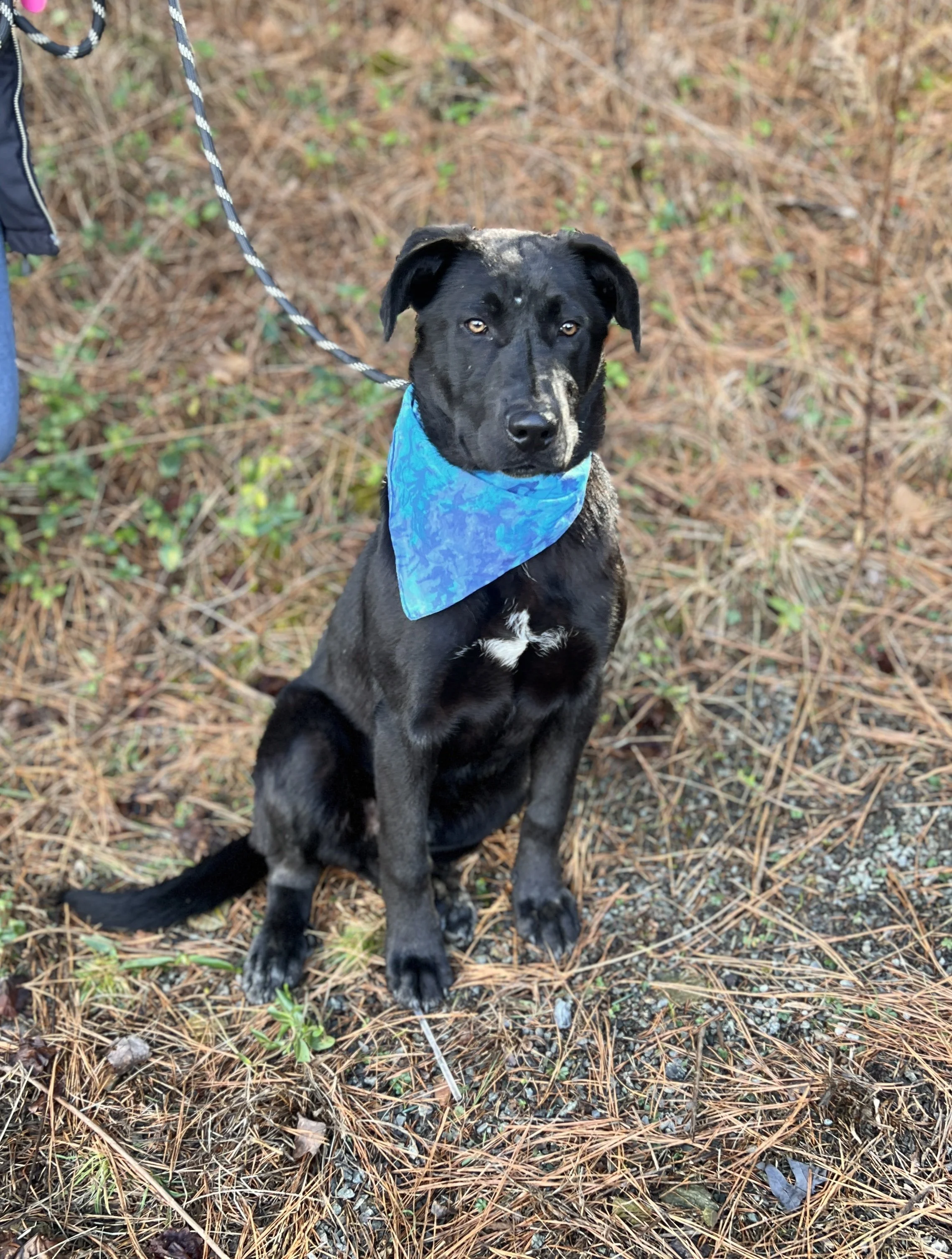 Scout is making new play yard friends, is easy on a leash, and is a ton of fun in afternoon enrichment. He loves to play fetch, knows basic commands, and is very well rounded and socialized with people.