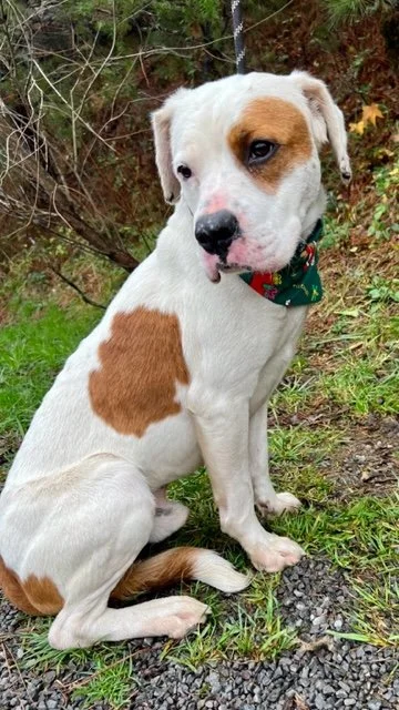 This adorable lovable 1 year old American Bulldog was pulled from a horrible life living outdoors, on a very short chain. And yet he is sweet, loving, and gentle. We are nursing him to a healthy weight and making sure to give him plenty of human love everyday. He does well with people of all ages and sizes and he seems to like all dogs. He will be neutered and fully vaccinated at time of adoption. Lets get him out of here and with a loving family that he deserves!